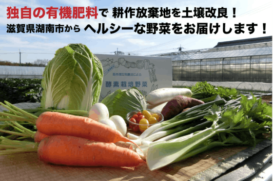 独自の有機肥料により滋賀県湖南市にある耕作放棄地を土壌改良し、有機栽培でヘルシーな美味しい野菜を作り、全国に届けます!