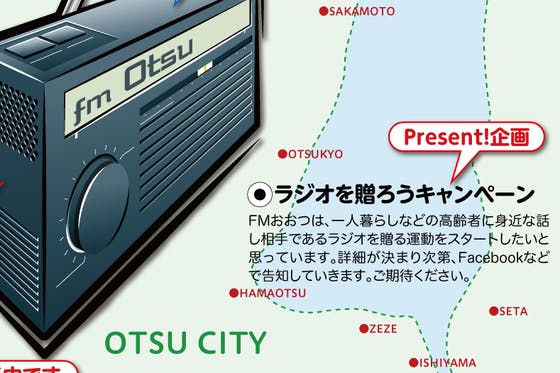 今秋、大津市内を主な受信エリアとする、FMおおつを立ち上げ、一人暮らしの高齢者の方々へラジオ1,000台をお贈りしようと考えています。 市民の支え合いにより、...
