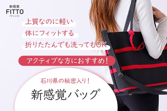 思わずさわりたくなる、さわらせたくなる新感覚バッグ。品があって上質なのに、洗濯できて、しかも見た目から想像できない軽さ。素材は石川県特産のゴム入細幅織物。実は石...