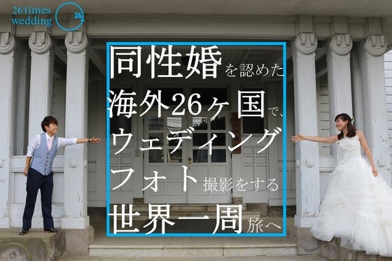 LGBTカップルによる、同性婚が認められた海外26ヶ国でウェディングフォトを撮る世界一周旅「26回結婚式 」という企画を始めます。日本では同性婚が認められていな...