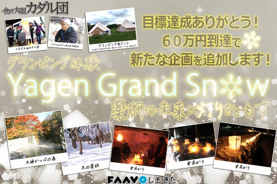 今、薬研温泉郷の旅館・ホテルの廃業が相次ぎ、その存続が危ぶまれています。そこで私たちイカす大畑カダル団では「グランピング」をテーマにした「Yagen Grand...