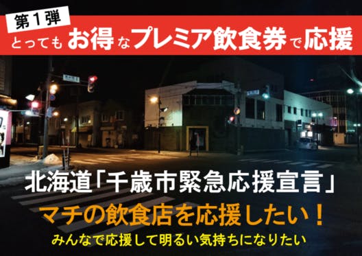 北海道「千歳市緊急応援宣言」します!新型コロナウィルスによって大打撃を受けている飲食業界、そしてマチの小さな飲食店を地域一体となった取組で応援します。
