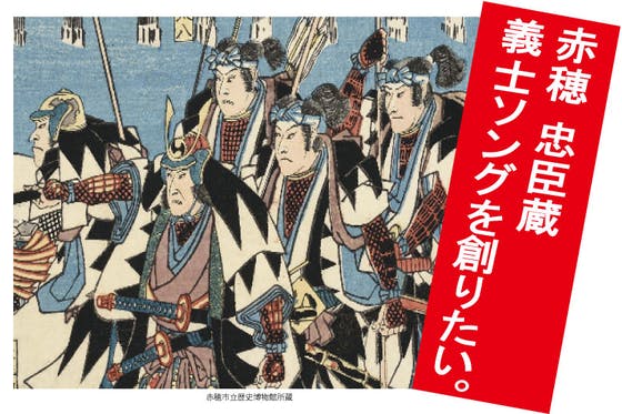 赤穂市にとって財産である忠臣蔵に少しでも若い人たちに関心を持ってもらえる方法として、忠臣蔵義士ソングを創ります。