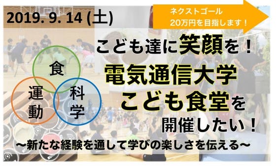 電気通信大学こども食堂は、調布市在住のこどもたちと大学生を結ぶイベントです。イベントを通して、こどもたちに新しい経験から学ぶ楽しさを教えたいです!開催3度目、こ...