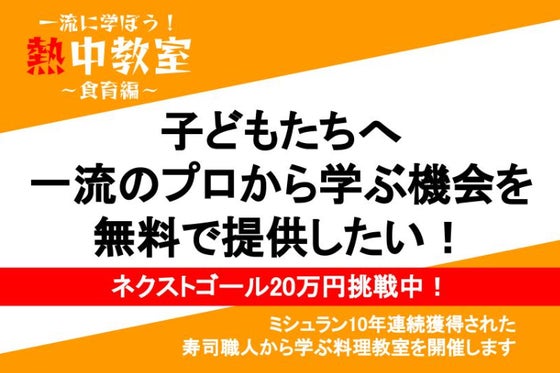 子どもたちが無料で一流のプロから学ぶ「熱中教室」を開きます。 誰もが自分の好奇心と学びたい欲求に素直になれる場があることで、 好奇心が育まれ、答えのない問いに立...