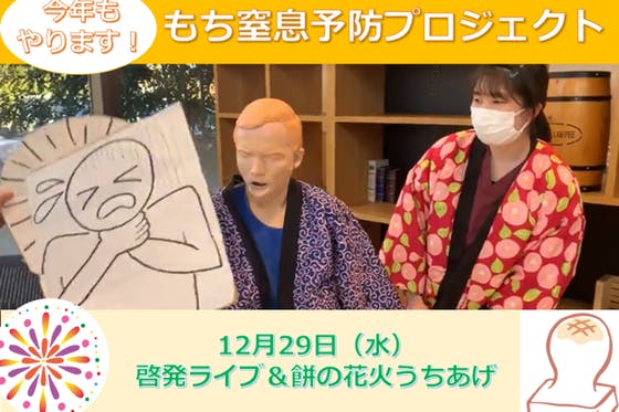 昨年話題になった「もち窒息予防プロジェクト」がかえってきた!ライブ配信、Twitter啓発に加え、なんと今年は窒息予防を願って花火も上げちゃいます!!!筑波大学...
