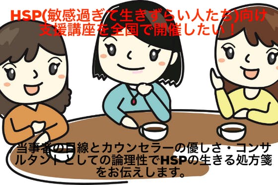 HSPだから故に苦しみ、生きづらさを感じている方に、HSPのことをもっと知ってもらいたい。実際に会って、HSP同士の空間を共有することで、共感が生まれます。共感...