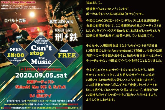 横須賀のクラブシーンの灯を絶やすな!HIPHOP、REGGAE、R&BやROCKやPUNKなど地元のライブハウス、ミュージシャンを守ろう!