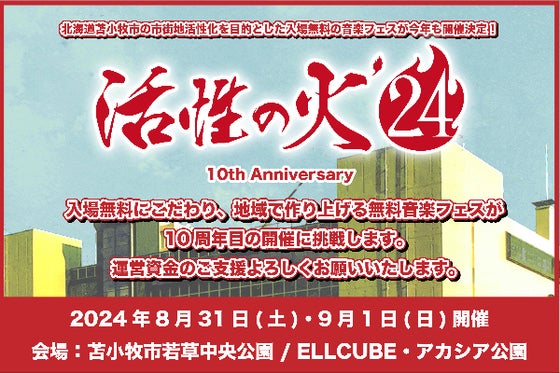 駅前中心街のにぎわいを創出し、この取り組みを通じて市民の皆様の中心街へ関心をより深めることを目的とし、苫小牧駅前野外音楽フェス「活性の火'24」を開催致します!...