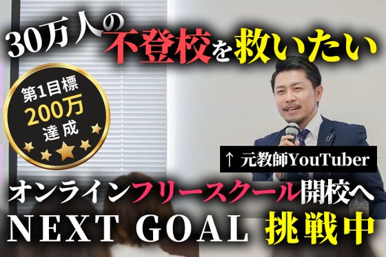 全国30万人の不登校生徒や今の学校教育に馴染めない子どもたちを救いたい。その為に『フリースクール』『通信制高校・サポート校』『総合型選抜』の仕組みをうまく組み合...