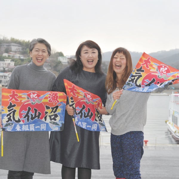 一般社団法人 歓迎プロデュースの小野寺紀子と斉藤和枝です。 私たちは、宮城県の最北東端にある気仙沼市で生まれ、家業が漁船・水産業に関わる仕事をしていたこともあり、小さな頃から家に漁師さんが出入りしていたり、日常に漁師さんたちがいる中でそれぞれ育ちました。 現在、小野寺は気仙沼で漁船に餌や資材を積み込む会社、斉藤は水産加工会社を経営しながら、「気仙沼つばき会」という女将の団体で活動しています。その「気仙沼つばき会」で出会った漁師大好きな移住女子、根岸えまがチームに加わり、3人でこのプロジェクトを立ち上げます。