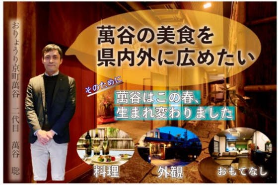 福井県越前市【料亭オーベルジュ萬谷】の新しい美食を県内外の方に広めたい!