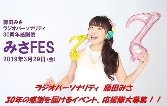 ラジオパーソナリティ 藤田みさ 30周年感謝祭『みさFes!』を開催します!音楽の素晴らしさを発信し続けて30年。皆様への感謝を込めて企画しました。大好きな音楽...