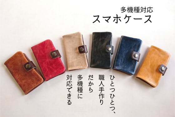 個人作家だからできる、細かな機種対応。やわらかく軽い、【やさしい革】を使用したオーダーメイドの「スマホケース」。CAMPFIREに感謝の気持ちを込めて、特典多数...