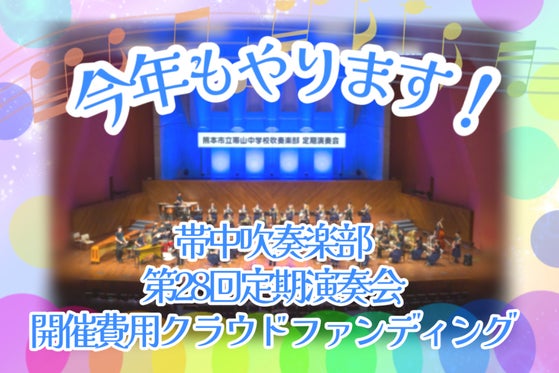 熊本市立帯山中学校吹奏楽部です。これまで地元企業様の広告協賛金を主な開催費用として、定期演奏会を行なっておりました。しかし新型コロナウイルス感染症拡大をきっかけ...