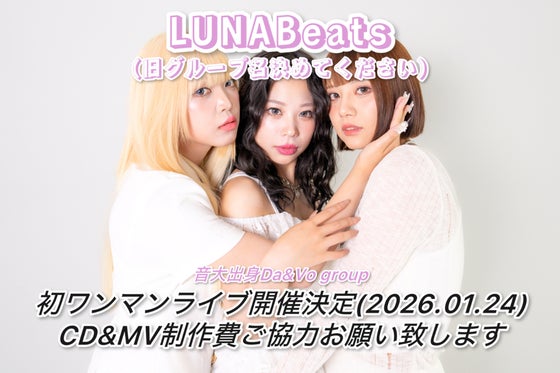 2026年1月24日にLUNAbeatsワンマンライブ開催決定。ダンス&ボーカルグループの活動を応援してくれるファンの皆さんと形にしていきたく、CDとmv製作を...
