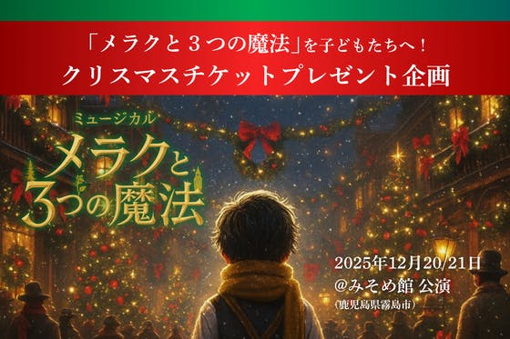 霧島発のミュージカル「メラクと3つの魔法」を、子どもたちの“はじめてのミュージカル体験”にしたい。そんな思いから生まれた、チケットプレゼント専用クラファンです。...