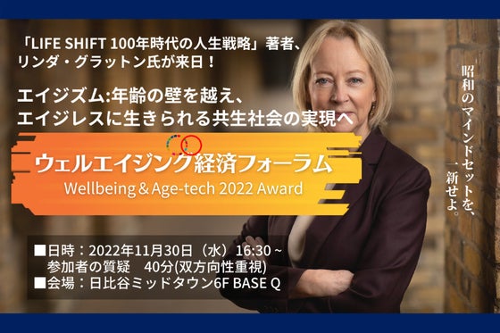 ウェルエイジング社会の実現に向け、「LIFE SHIFT」で有名なリンダ氏をお招きし、「官民政策座談会や、高齢社会の包摂性とWell-beingを高めるエイジテ...