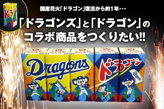 花火の「ドラゴン」と「中日ドラゴンズ」の限定コラボ商品をつくるためのプロジェクトです。 中国産花火に押され苦境に立たされる国産花火の代表「ドラゴン」と、 ペ...