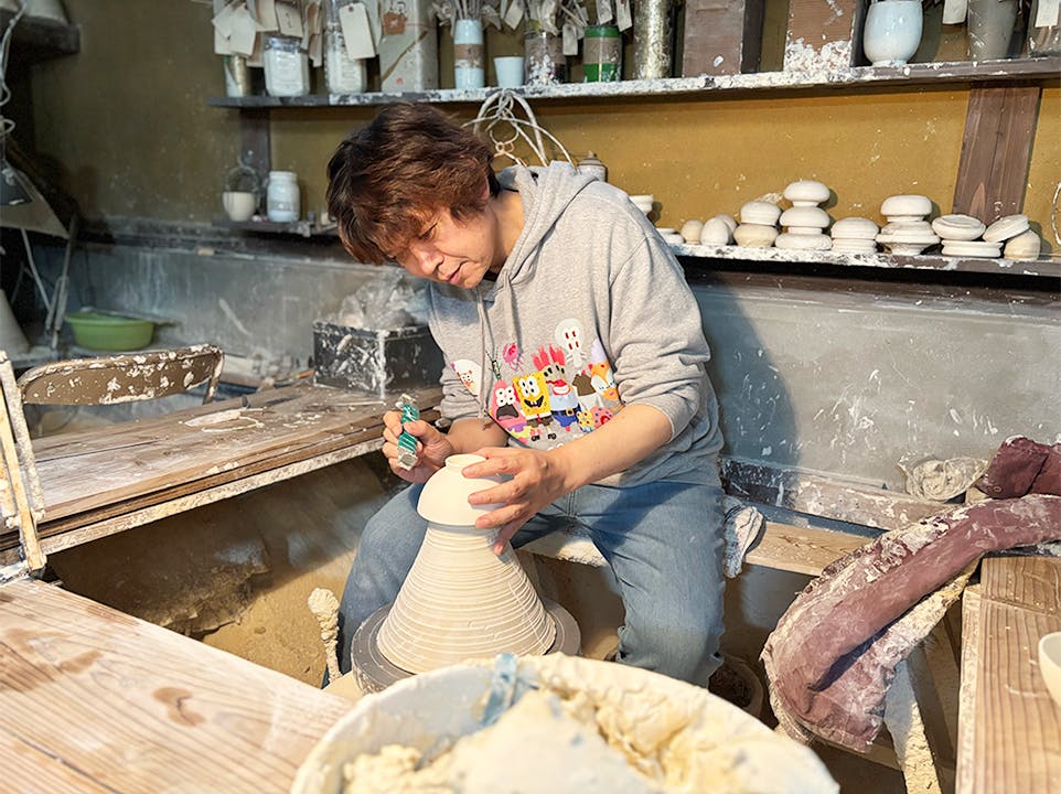 有田焼を一から学ぶため矢鋪與左衛門に弟子入り。以来24年、磁器ロクロを学びながら師である與左衛門とともに全国各地でロクロ体験を開催するなどしています。白磁の美しさと伝統的な技法の魅力、そして與左衛門の人柄を多くの方に伝えたいと思い今回のプロジェクトを立ち上げました。 そのかたわら、生活費を賄うために始めたデザイン業で株式会社PicaPicaを設立。アナログとデジタルをかけあわせ、新たな価値の創造を目指しています。
