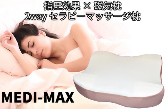 Medi-Max(メディマックス)は、指圧効果と磁気枕の両方の機能を持つ2wayセラピーマッサージ枕です。リラクゼーション効果のある深い指圧刺激と、磁気パルスに...