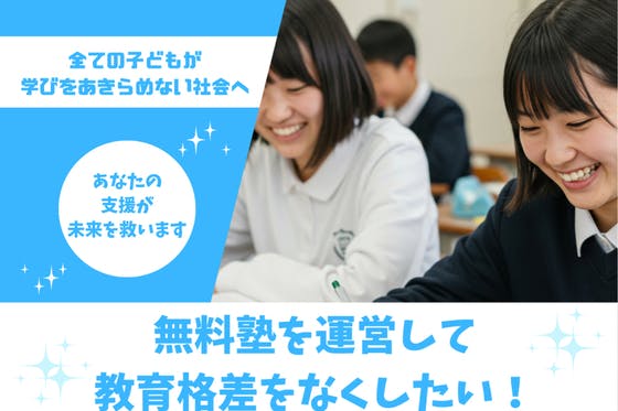 【成田市に無料塾を作りたい!】広がる教育格差是正のために、金銭的理由で塾に通えない子どもたちが通える塾を作り、そのような子ども達でも夢や希望を持って生きることが...