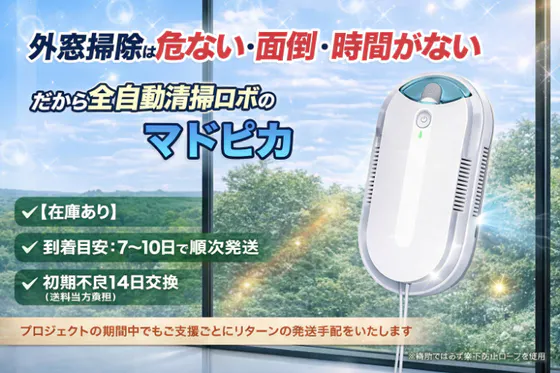 外窓の怖い作業や、脚立の面倒な窓掃除を「貼る→押す→放置」に変えます。噴霧しながら吸着自走して、拭き筋を抑えつつスピーディーに窓をきれいに仕上げます。ご支援後は...