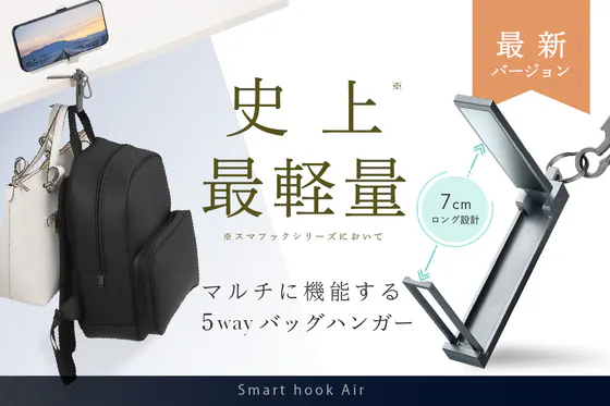 カフェ利用者必見!バッグの置き場に困らない 3WAY バッグハンガー スマフック! 荷物を床に置かず、いつでもバッグを清潔に保てます! 長さ9cm 安定感&...