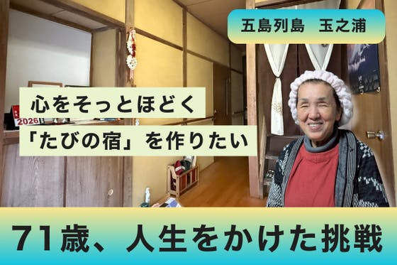 五島列島・福江島最西端の玉之浦で、心ほどける時間を過ごせる「たびの宿」を整えたいと考えています。高齢化で宿が減る一方、私の宿も老朽化で進んでいます。水回りをきれ...