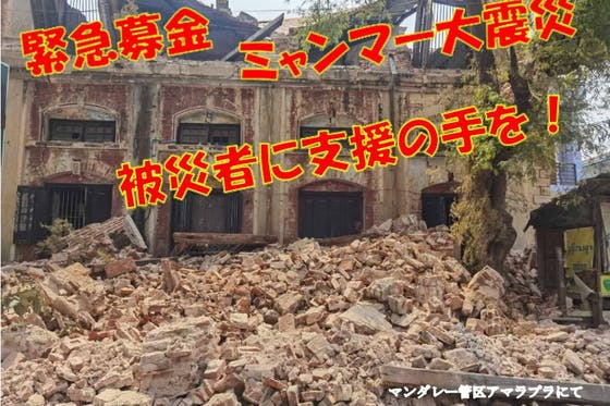 3月28日ミャンマー・マンダレー付近を震源にマグニチュード7.7のおおきな地震が発生。国軍のクーデターによる内乱状態が続く中、さらに大きな地震が発災。阪神大震災...
