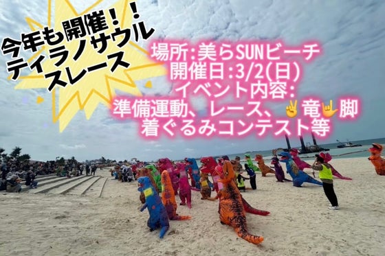 2025年3月2日(日)に沖縄県豊見城市にある美らSUNビーチを舞台として開催する「ティラノサウルスレースin沖縄!」沖縄の貧困問題への関心喚起と物質的支援の実...
