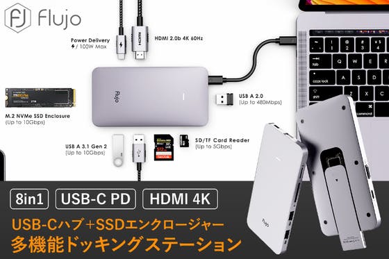 SSDエンクロージャーとUSB-Cハブが1つになった、多機能ドッキングステーション!ノートPCのポート不足を解消し、さらにSSDエンクロージャーで容量不足もカバ...