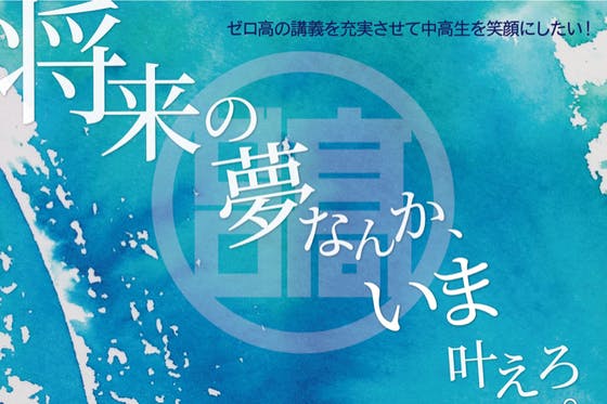 【ゼロ高等学院について】 主宰 堀江貴文「将来の夢なんか、いま叶えろ」「座学よりも行動」を教育方針として掲げる通信制の教育機関。全国に約80名の生徒が在籍、日本一起業家を輩出する高校を目指している。